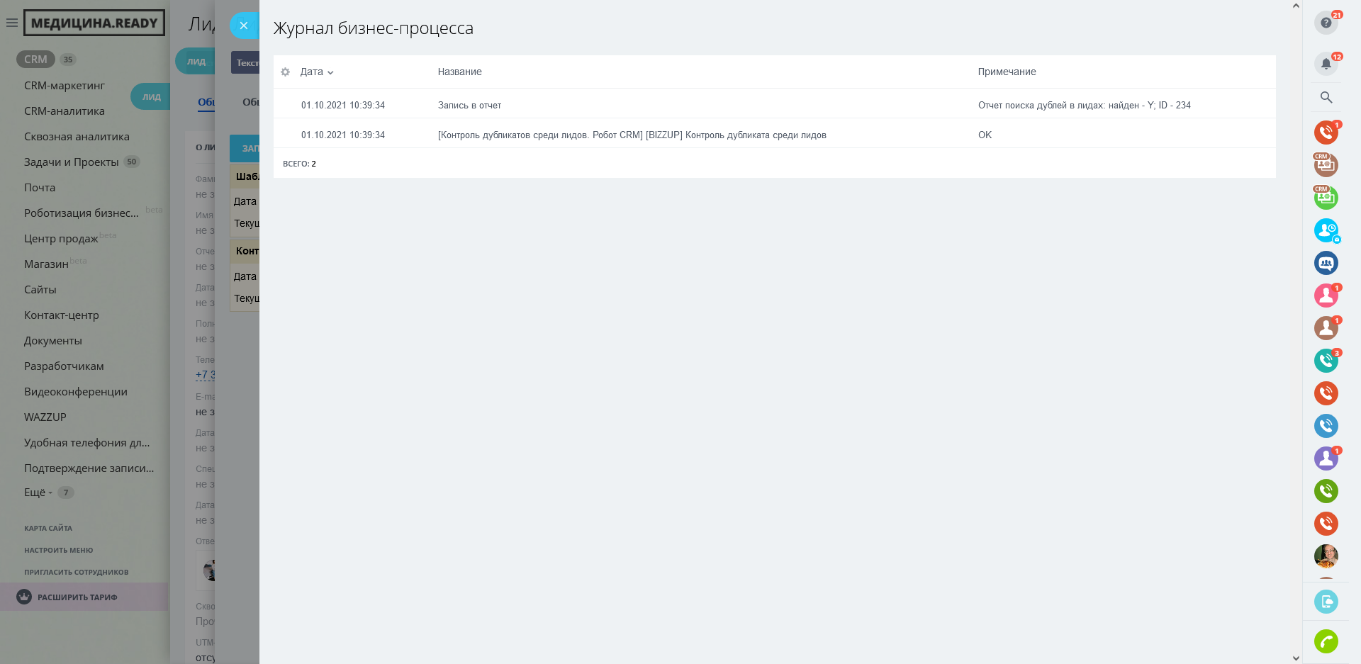 Контроль дубликатов среди лидов. Робот CRM