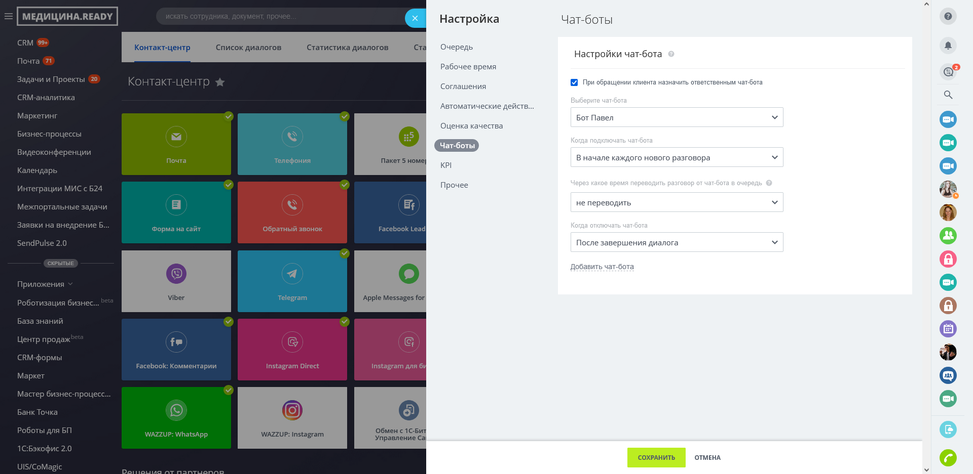 После установки приложения из Битрикс24.Маркет необходимо сделать следующие настройки в канале открытой линии: