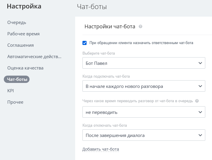 По желанию, не обязательно, установить следующие настройки для бизнес-процессов, созданных при установке Бота: