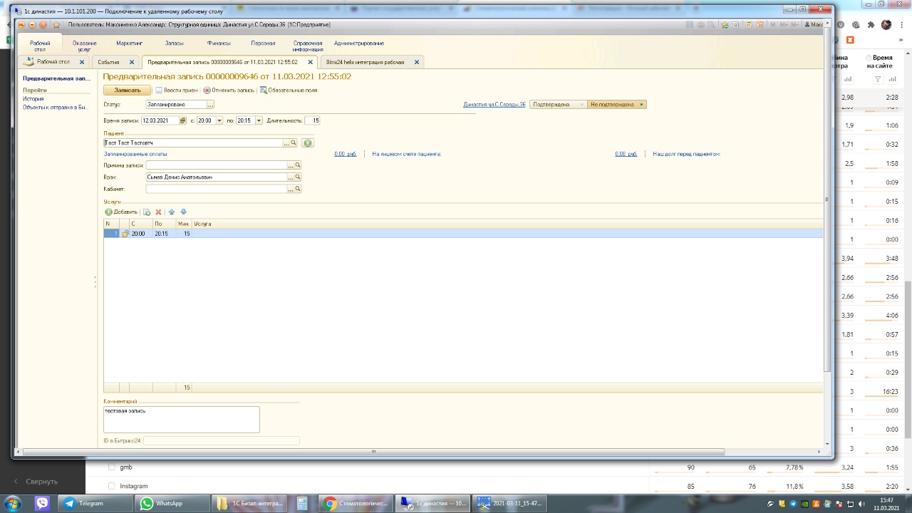 По окончанию приема передаем в Битрикс24 данные об оказанных услугах и стоимость приема.