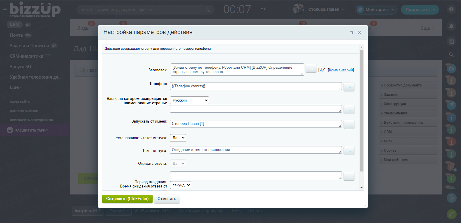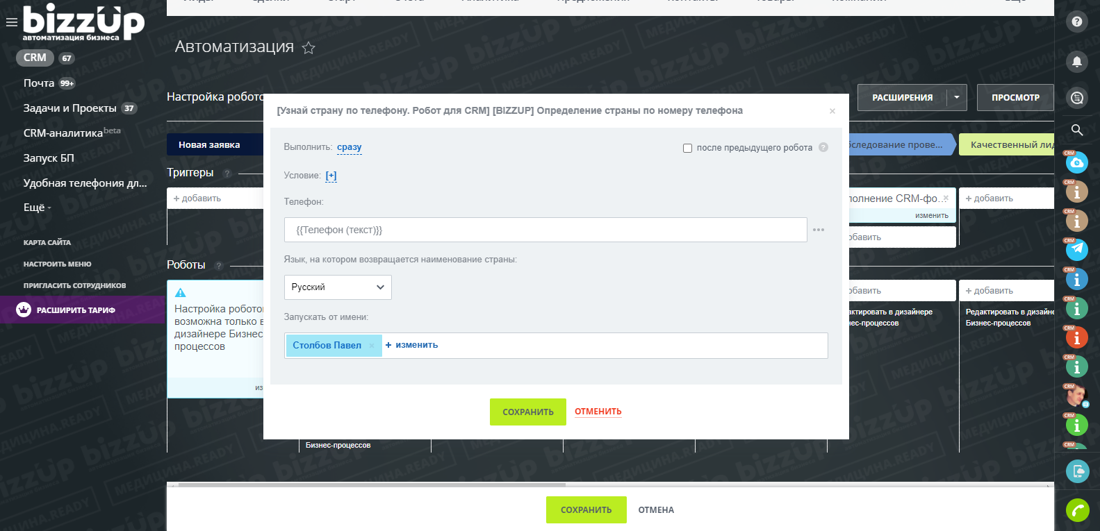 Узнай страну по телефону. Робот для CRM