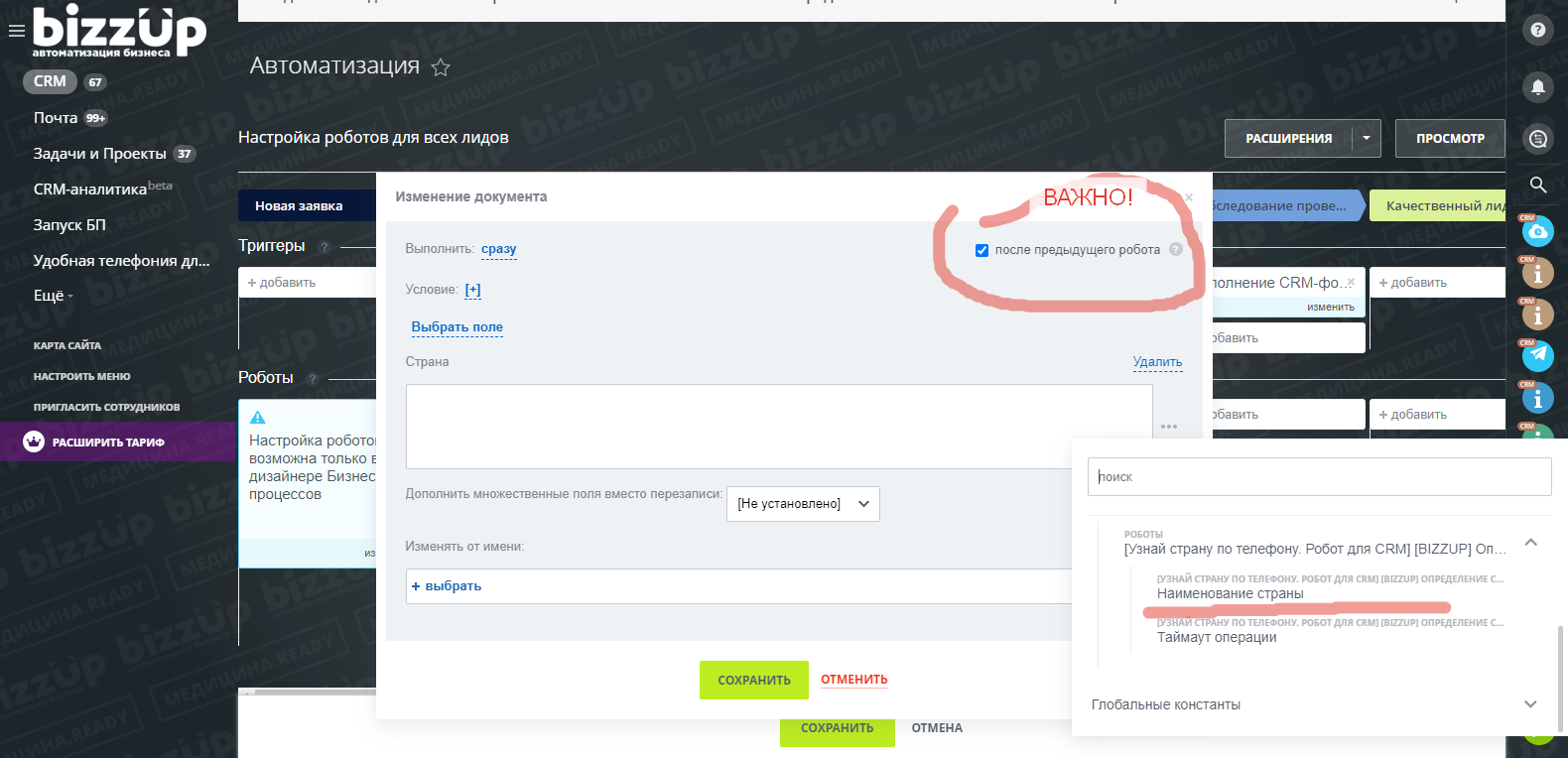 Робота с заполнением данных в документ важно ставить ПОСЛЕ ПРЕДЫДУЩЕГО робота по определению страны по телефону.