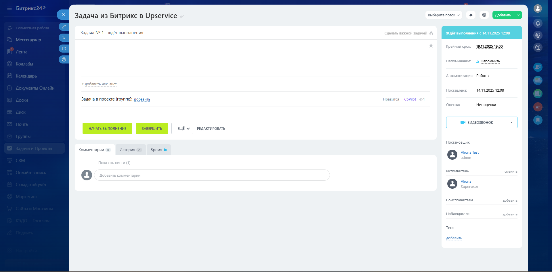 Синхронизируйте работу с задачами Upservice вместе с Bitrix.