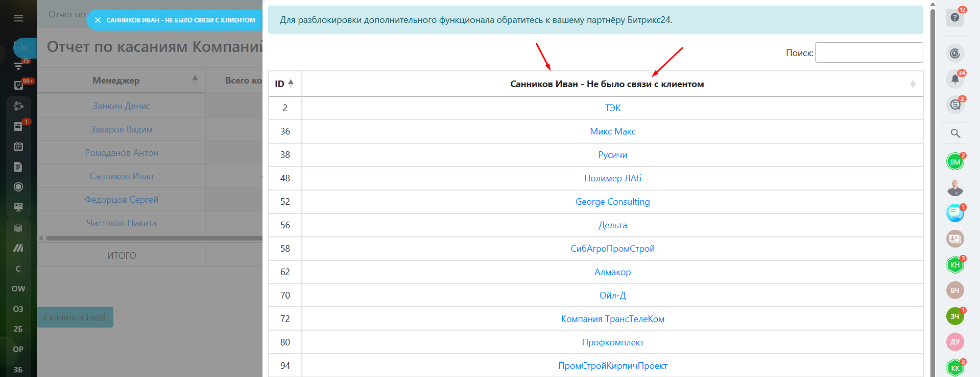 Каким клиентам вы давно не звонили? Отчет по касаниям Компаний покажет когда ваши менеджеры последний раз выходили на связь с вашими клиентами!