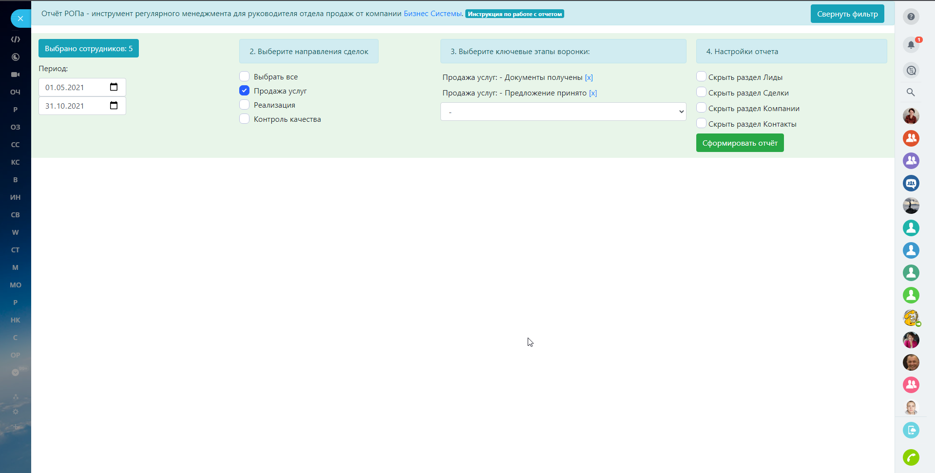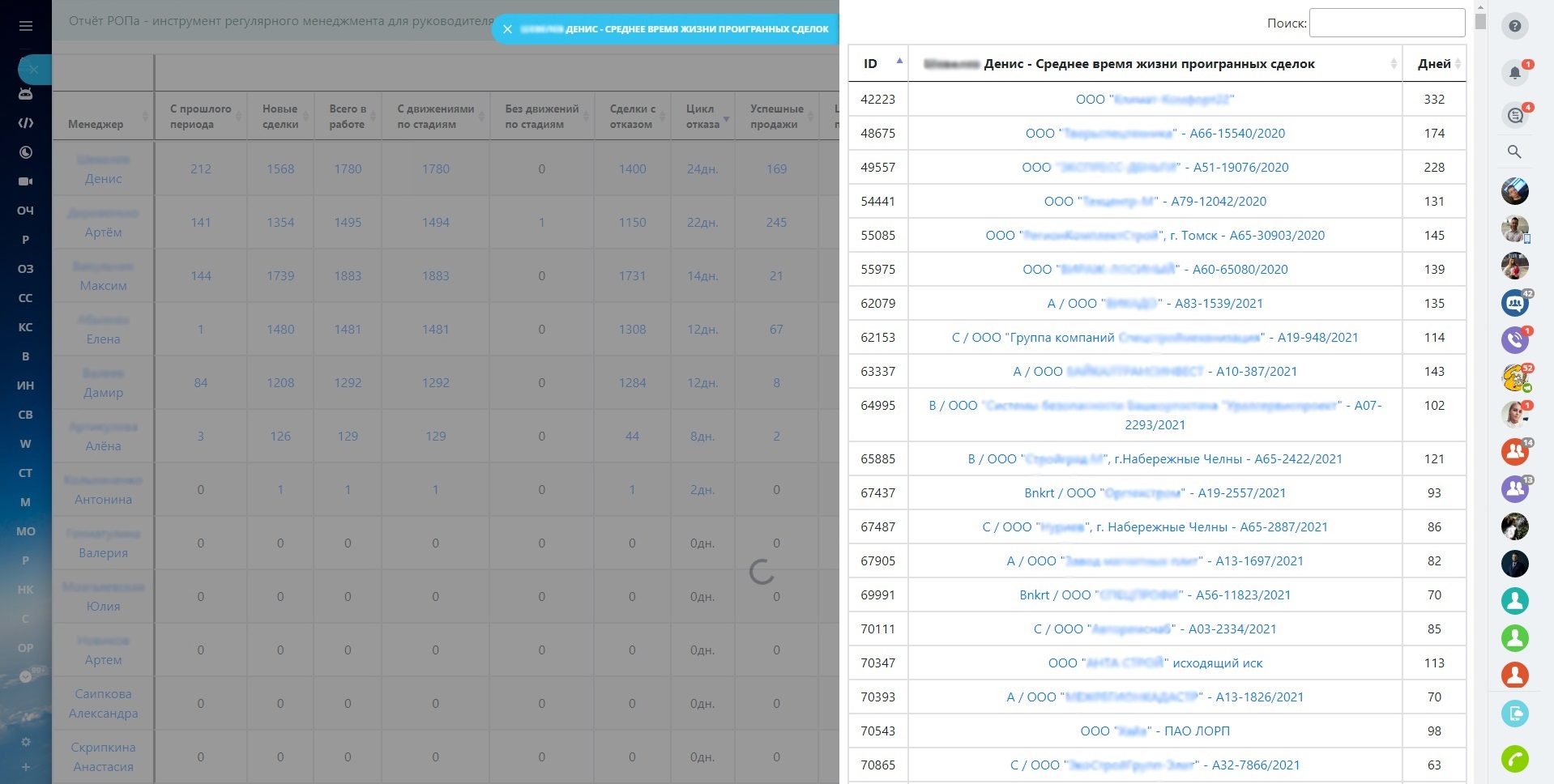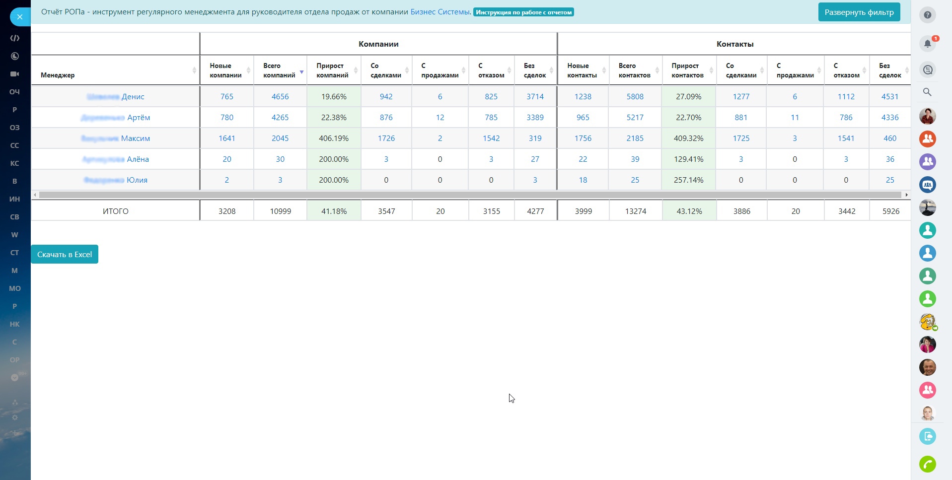Отчет РОПа позволяет отследить эффективность работы как отдела в целом, так и каждого сотрудника