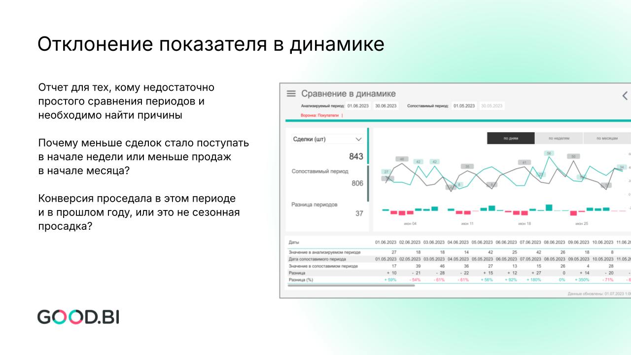 Доступен на одноименной вкладке приложения в Bitrix24, в кабинете сервиса GOOD.BI, в среде Power BI.