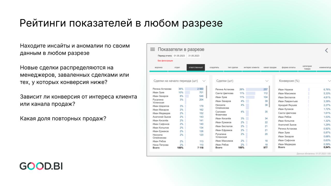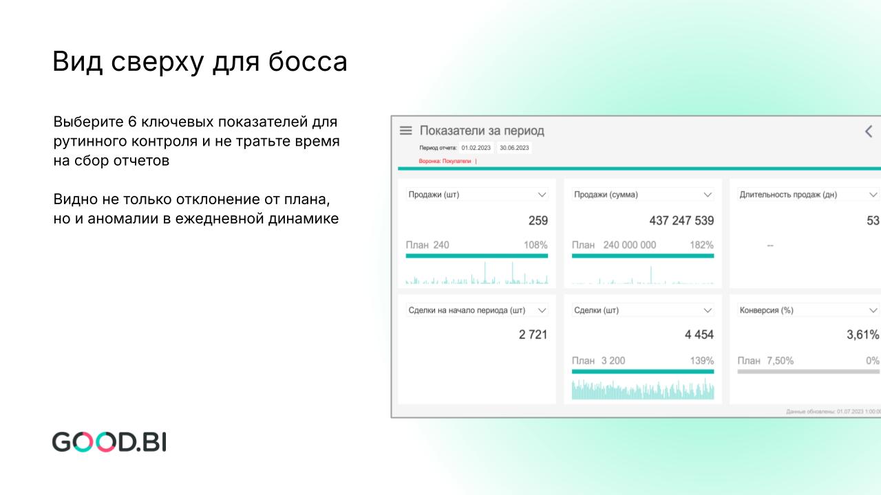 GOOD.BI моментально завершит недоверие и споры маркетинга и продаж о количестве и качестве лидов - вкладе маркетинга и продаж в общий результат.