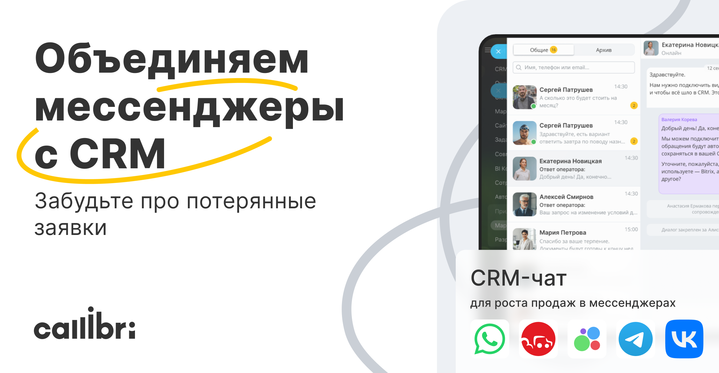 CRM-Чат Callibri (WhatsApp, Telegram, WABA, VK, OK, Авито, Дром, Авто Ру)