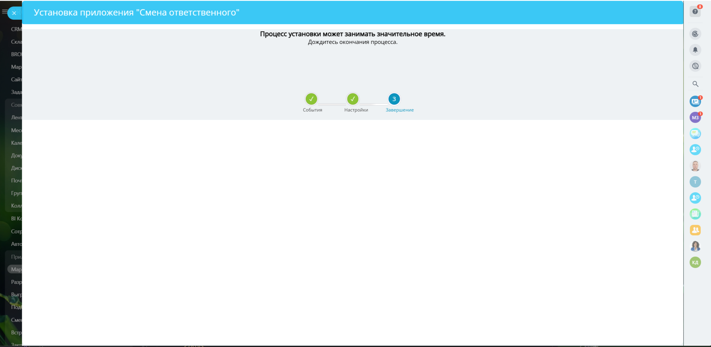 Обратите внимание, что приложение изменяет ответственного только в активных сущностях CRM. Если сделка завершена (успешно или неудачно), смена ответственного не произойдет, даже если такие сделки отмечены для обработки.