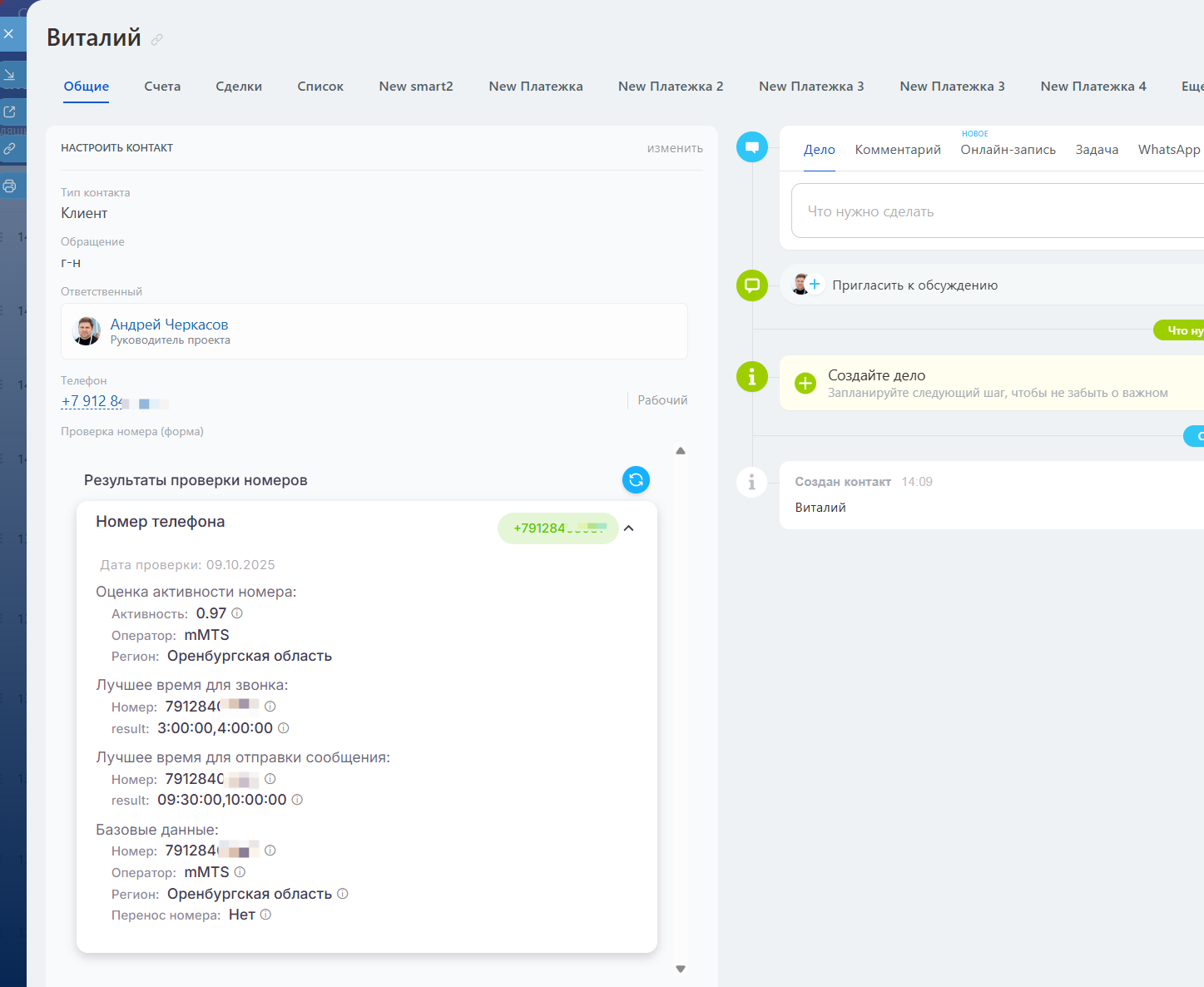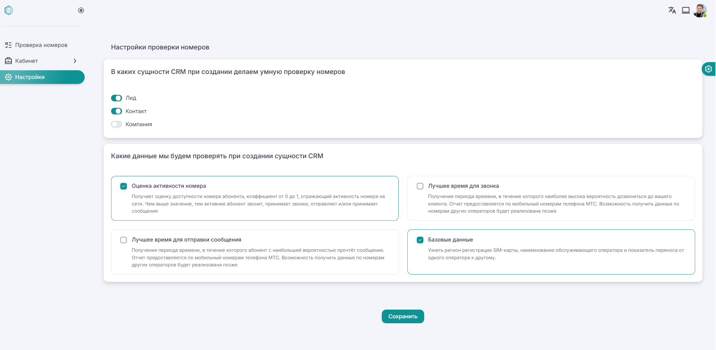 Внедрите автоматическую проверку номеров в CRM при добавление номера в карточку клиента. С этой информацией вы сэкономите на этапе планирования бюджета рассылки или время для обзвона.