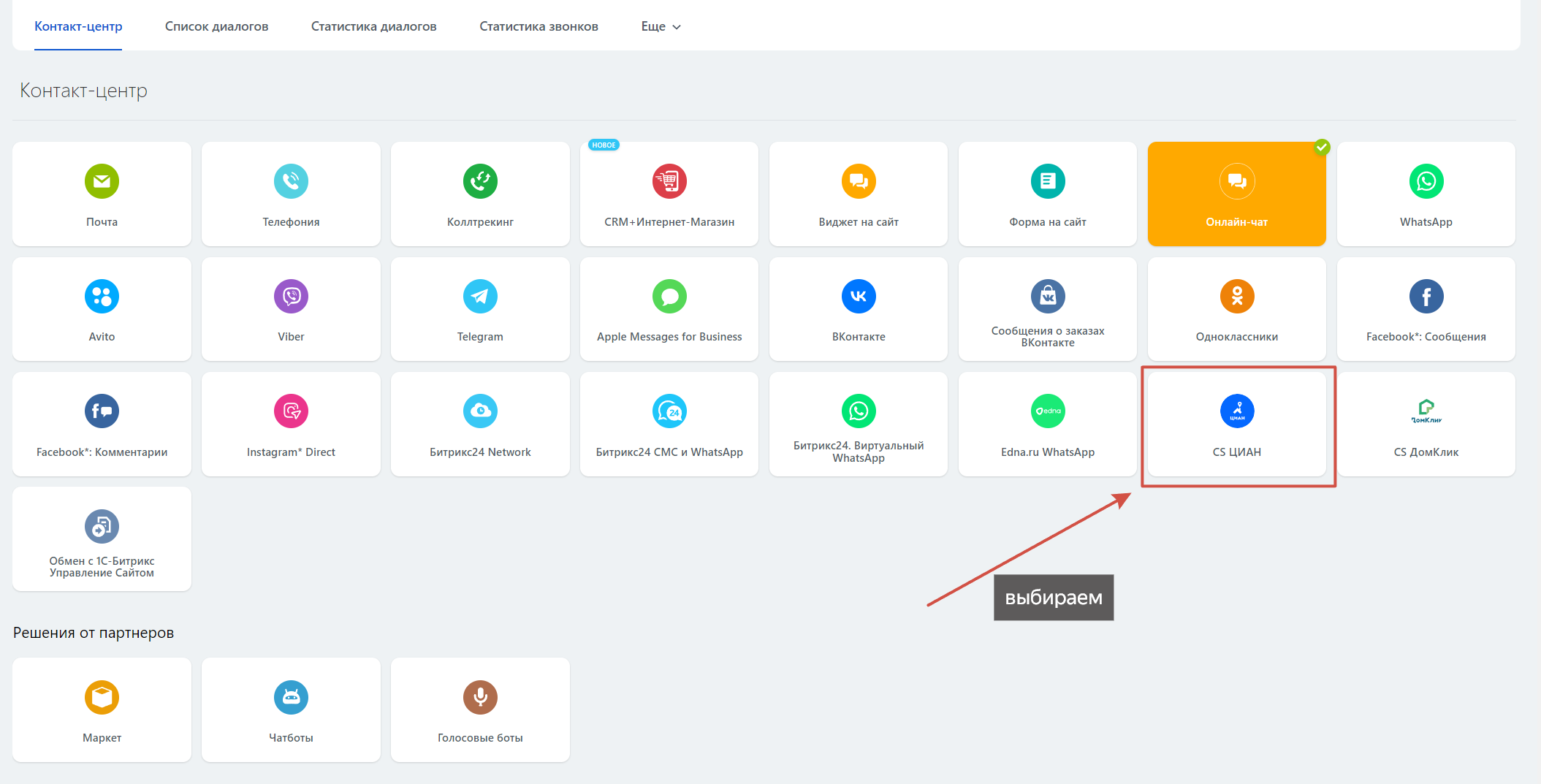 Данное приложение позволяет интегрировать чат с портала ЦИАН и Битрикс24, а бот поможет отследить, по каком объекту было обращение, сделает подборку похожих объектов, подготовит ссылку на подборку объектов для клиента и оперативно подключит к диалогу ответственного агента.