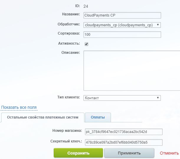 Модуль позволит с легкостью добавить в CRM платежный сервис CloudPayments. Для корректной работы модуля необходима регистрация в сервисе.