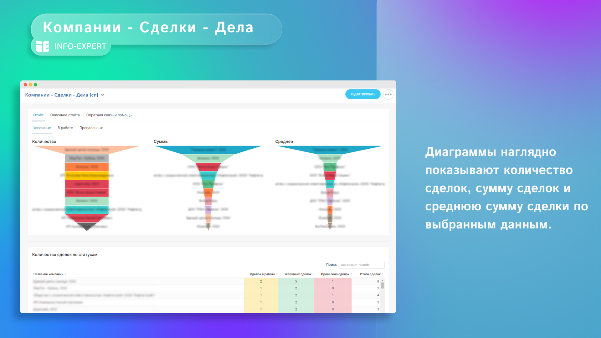 Быстрый анализ общих показателей по Сделкам и Делам в разрезе Компаний.