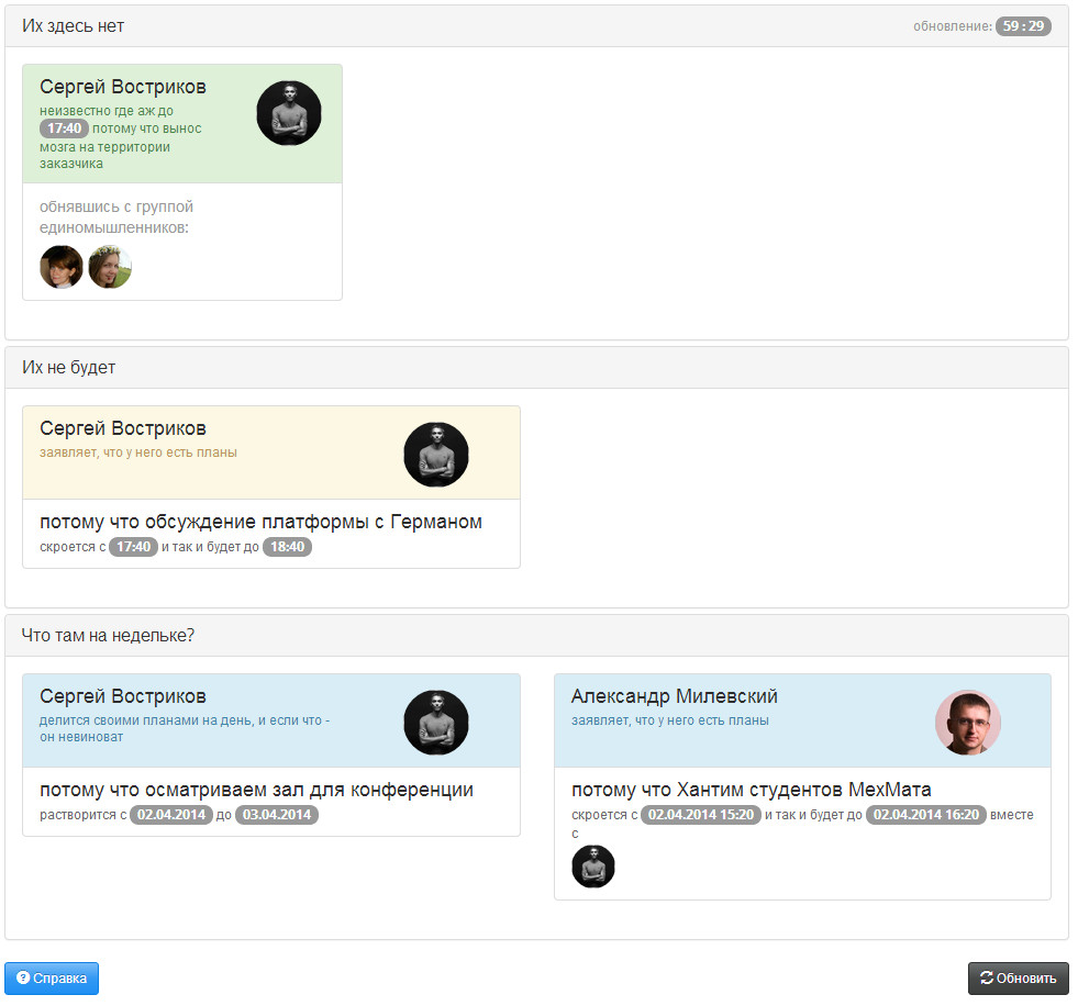 Вы хотите точно знать, кто прямо сейчас отсутствует в офисе? "А где все?" быстро дает ответ на этот вопрос.