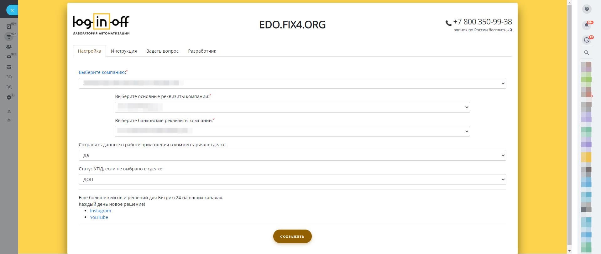 Что нужно для автоматизации?- Желание попробовать приложение EDO.FIX4.ORG от Лаборатории автоматизации «LOG [IN] OFF», которое распространяется по Подписке Битрикс24.Маркет Плюс.