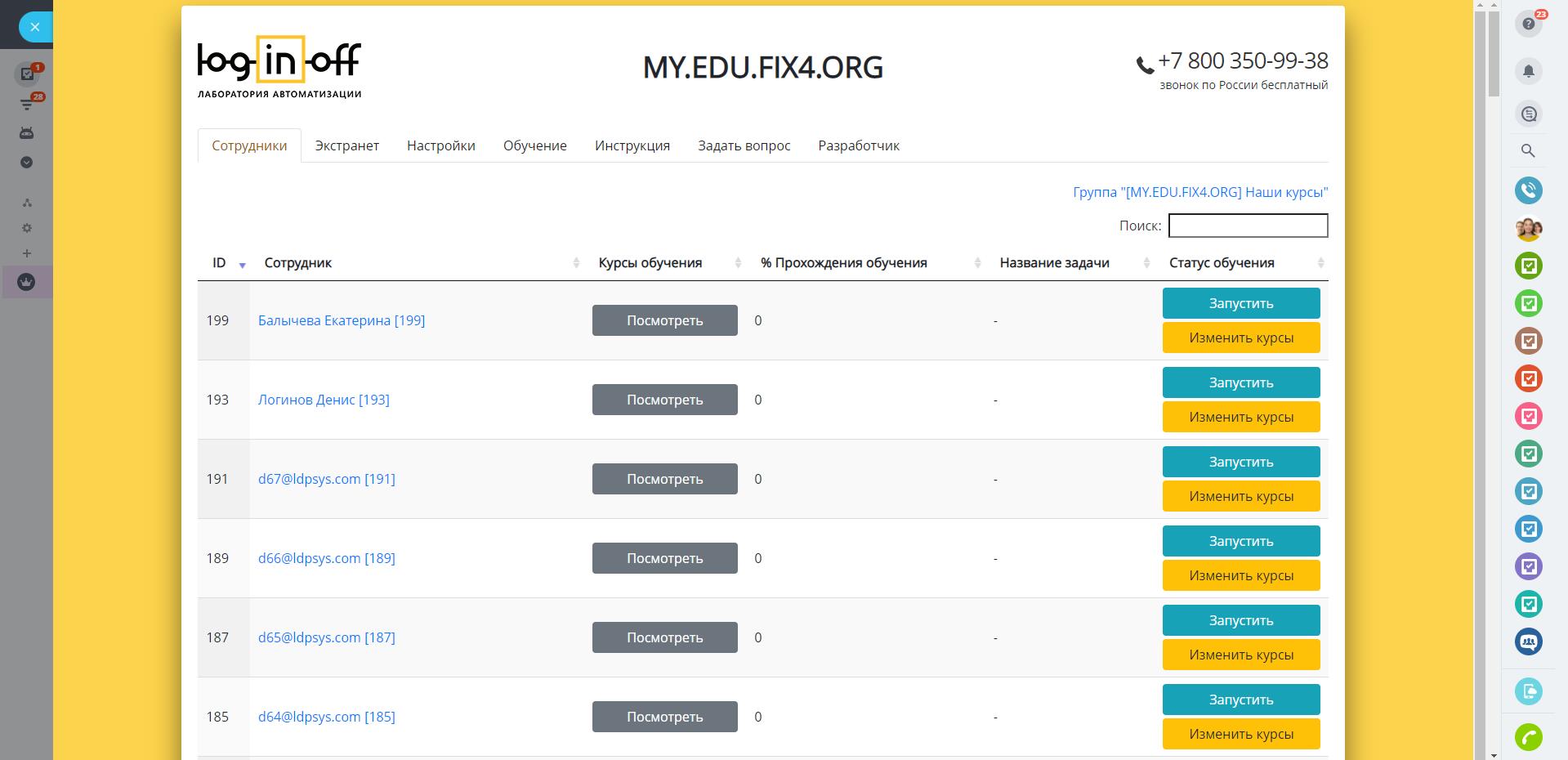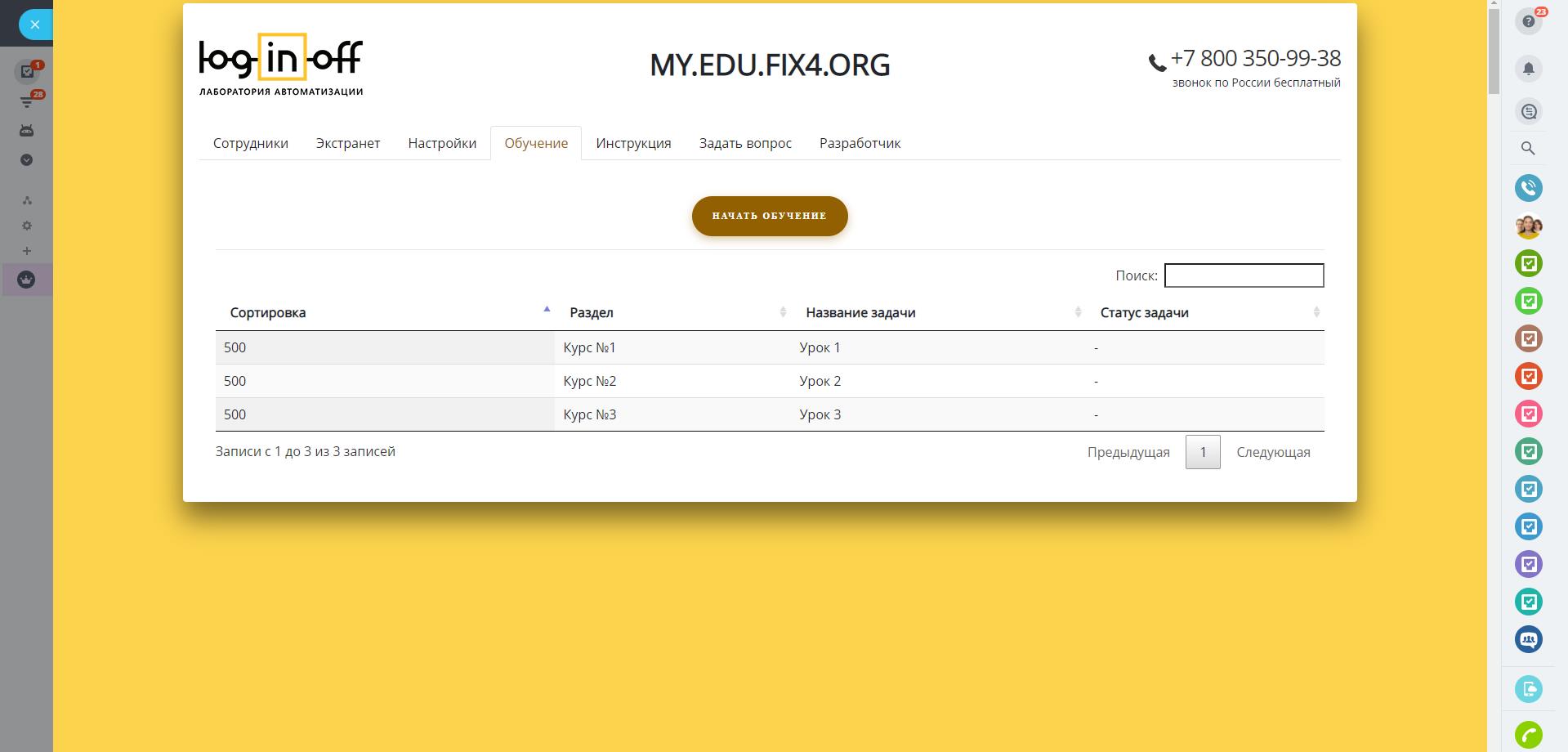 Как обучить 5 сотрудников бизнес-процессам и ИТ система в компании - вроде понятно. А как обучить с тем же качеством 50 или 1 000 сотрудников? Как понимать у кого, какой статус обучения. Как быстро ответить на вопросы. Как провести обучение максимально автоматизировано? Решение есть - Бесплатное приложение EDU.FIX4.ORG для обучения сотрудников компании в Битрикс24.CRM.