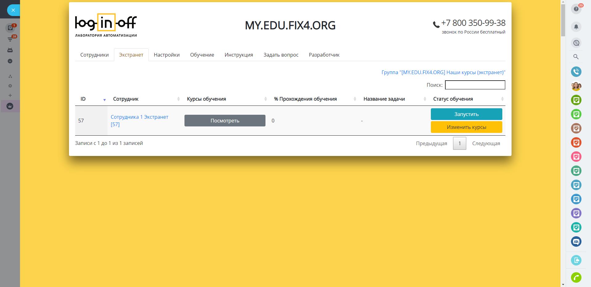 - Выбрать нужный курс обучения для сотрудника или экстранет пользователя