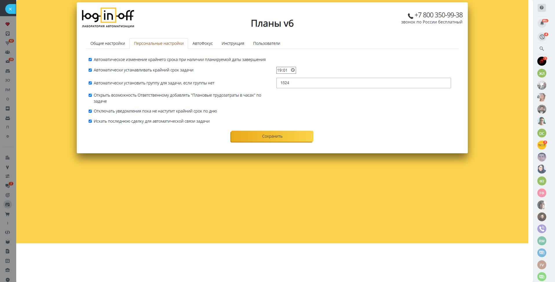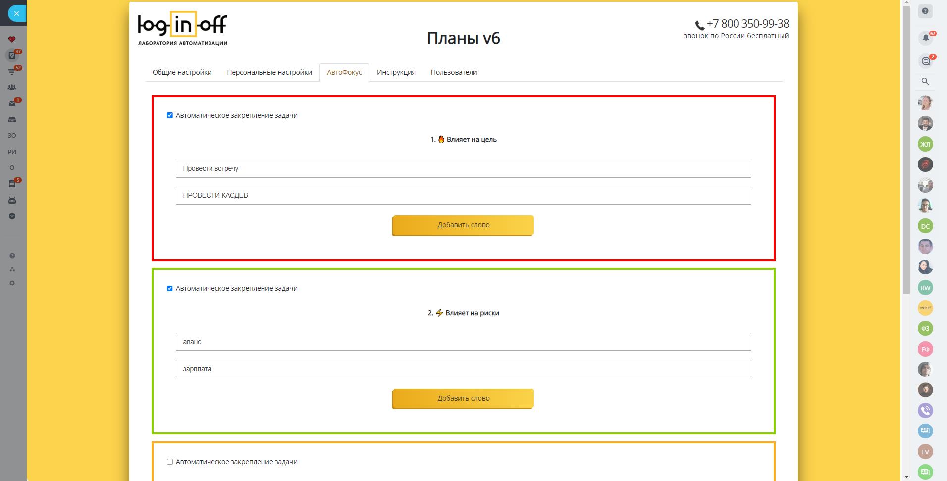 - Автоматическое определение типа задачи по индивидуальным ключевым словам сотрудника.