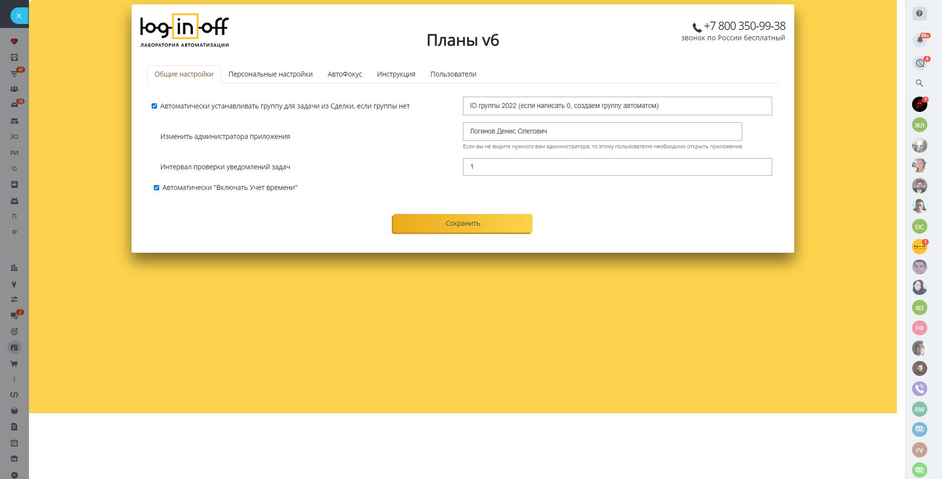 - Быстрое изменение постановщика задачи.