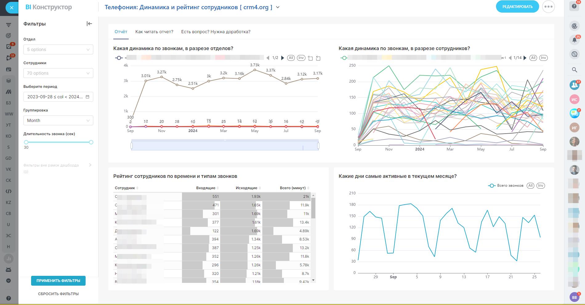 Телефония: Динамика и рейтинг сотрудников [ crm4.org ]