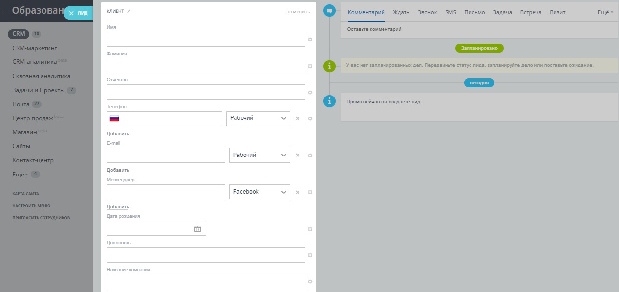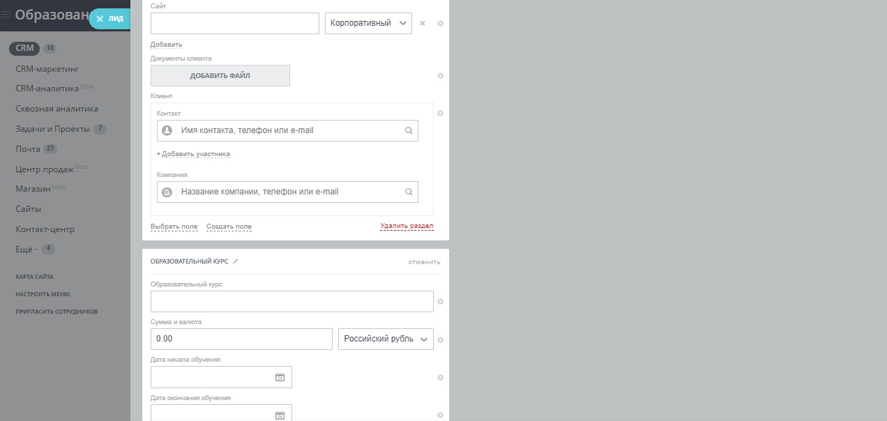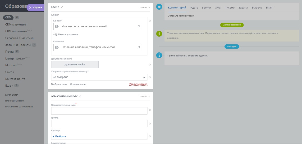 Образование.CRM уже настроено и готово к использованию, является простым в эксплуатации и позволяет организовать продуктивную работу с первого дня.