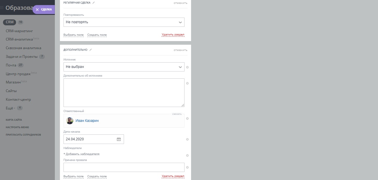 Модули (наборы настроек) для автоматизации работы в лиде и сделке.