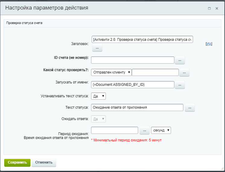 Приложение позволяет использовать активити "Проверка статуса счета" для автоматической работы со счетами, делая бизнес-процессы более гибкими.