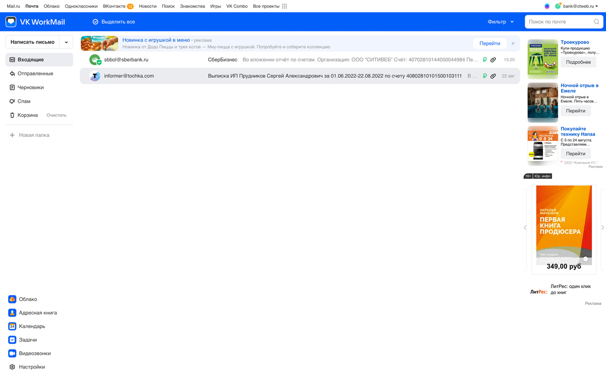- Создаете отдельный почтовый ящик для получения выписок (рекомендуется, но не обязательно);