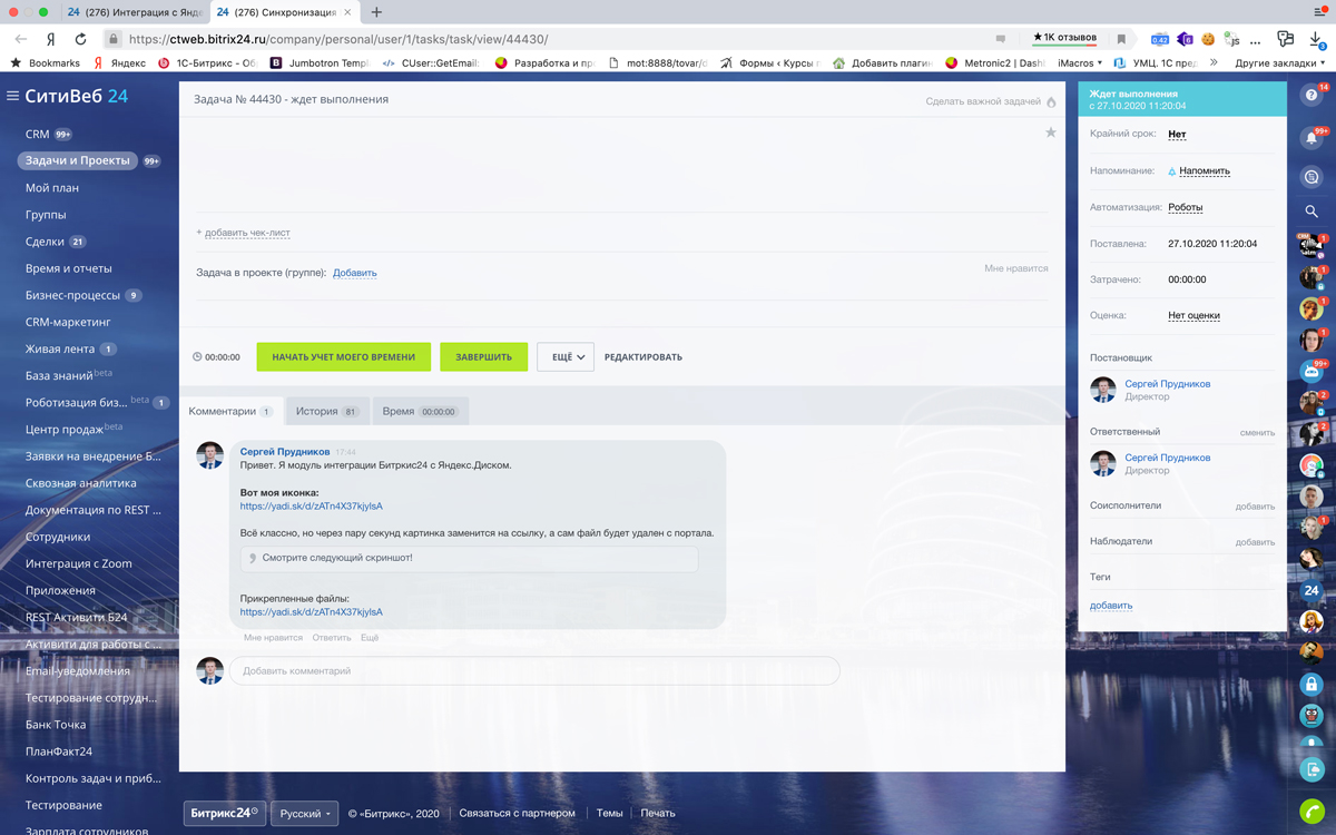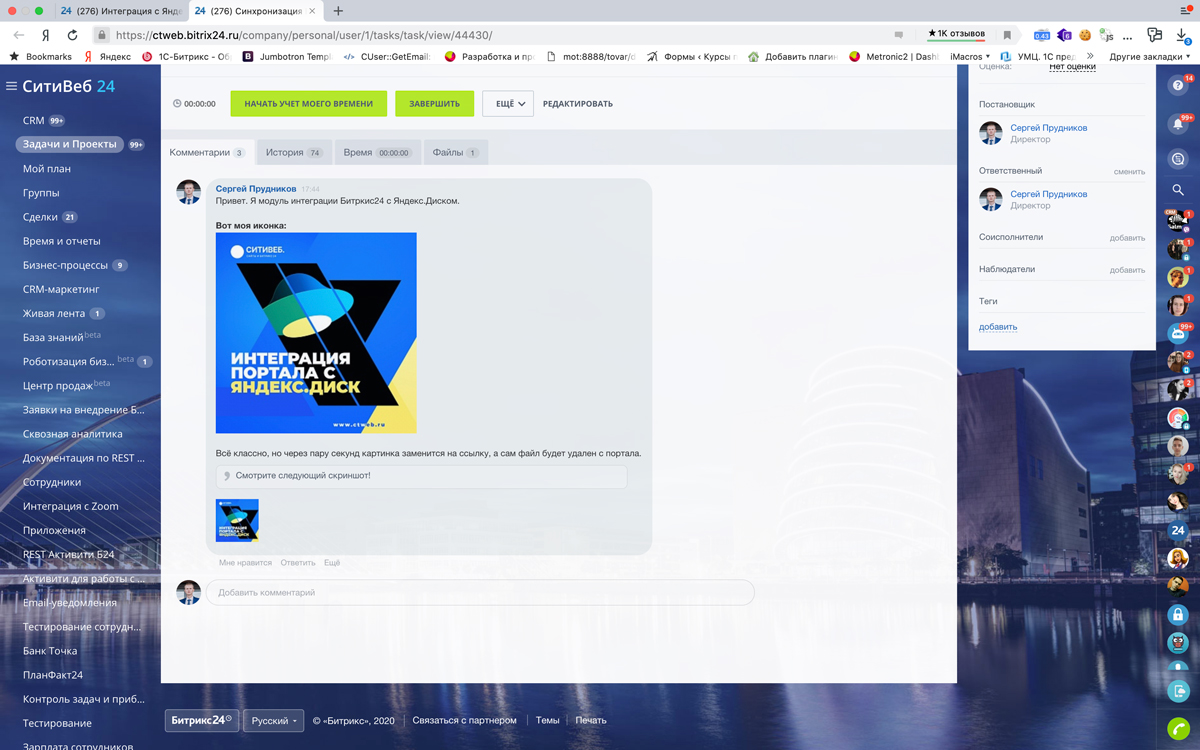 Отлично. Поставили, настроили и все работает. Работает как с Задачами, так и с CRM. Одн... ещё