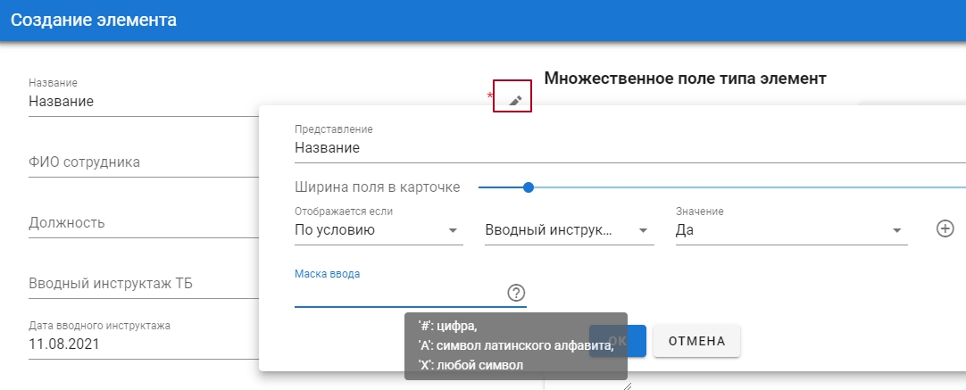 3. Настройка видимости поля в списке определяется конкретным условием, например, если необходимое поле заполнено определёнными данными.