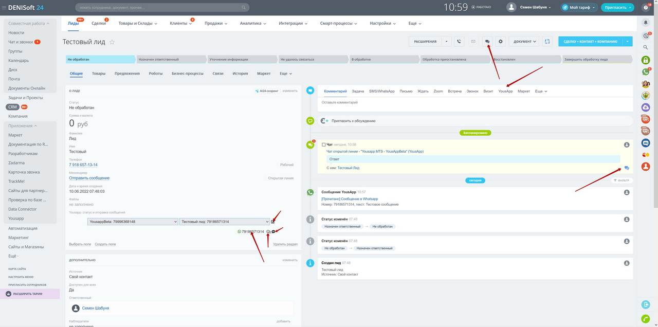 - Индикация о звонках в Whatsapp в чате и карточке CRM (назначается дело, вы не пропустите такой звонок)!