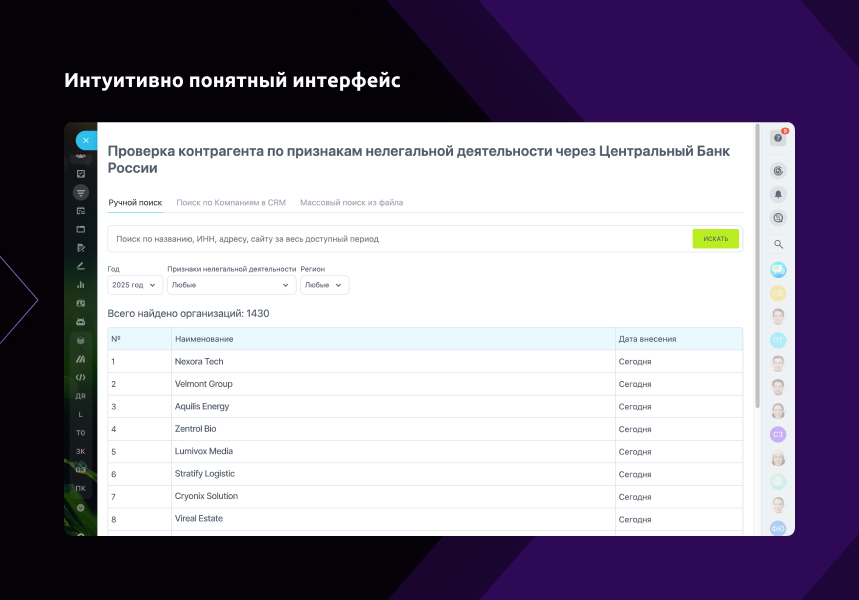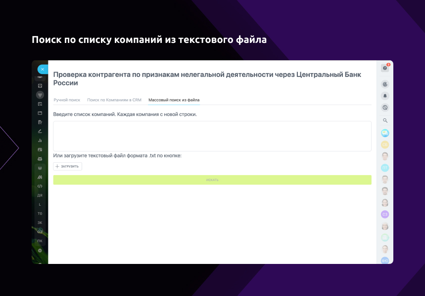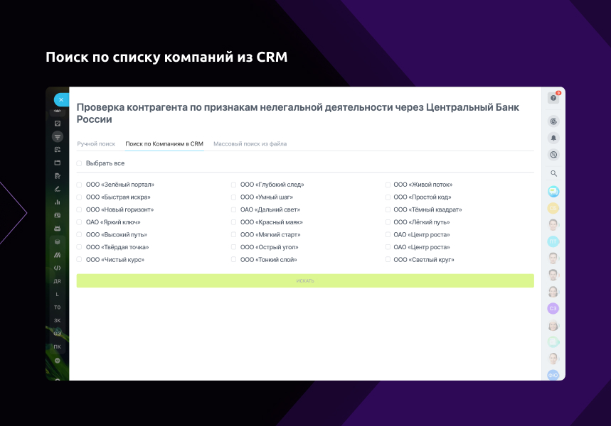 - Поиск по списку компаний из CRM