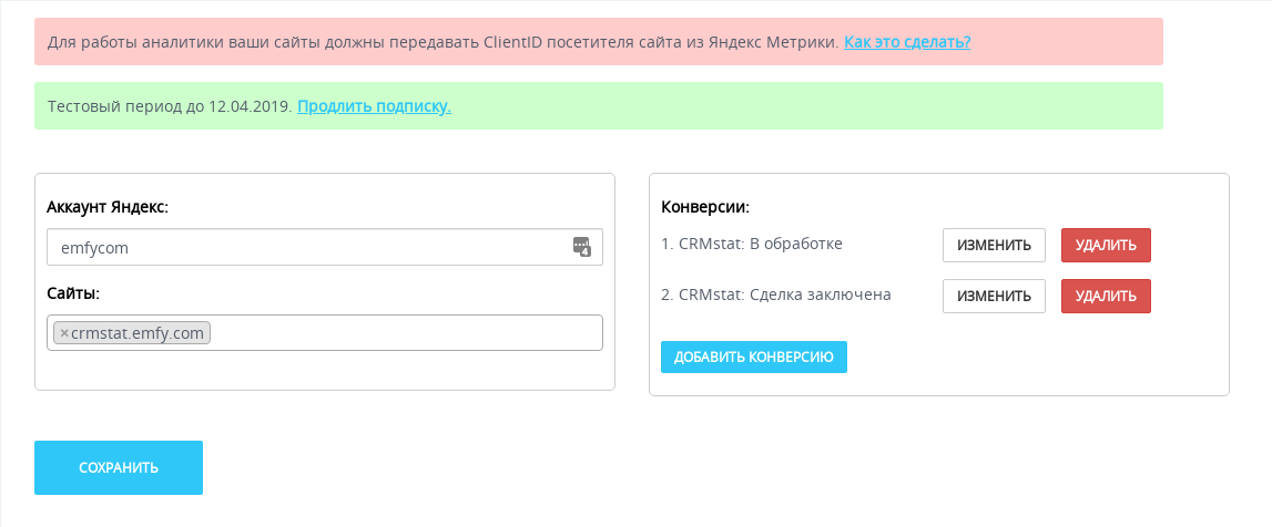 Тарифы на использование аналитики: https://crmstat.emfy.com/#prices