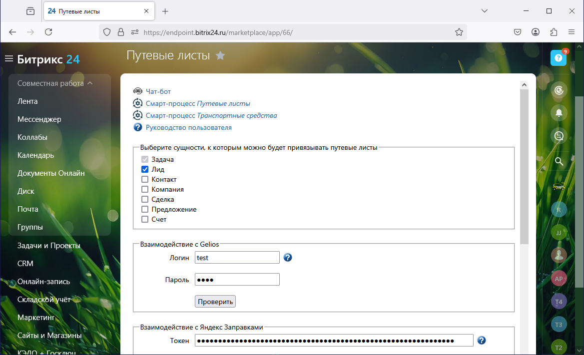 Приложение создает в среде Битрикс24 смарт-процессы Путевые листы и Транспортные средства.