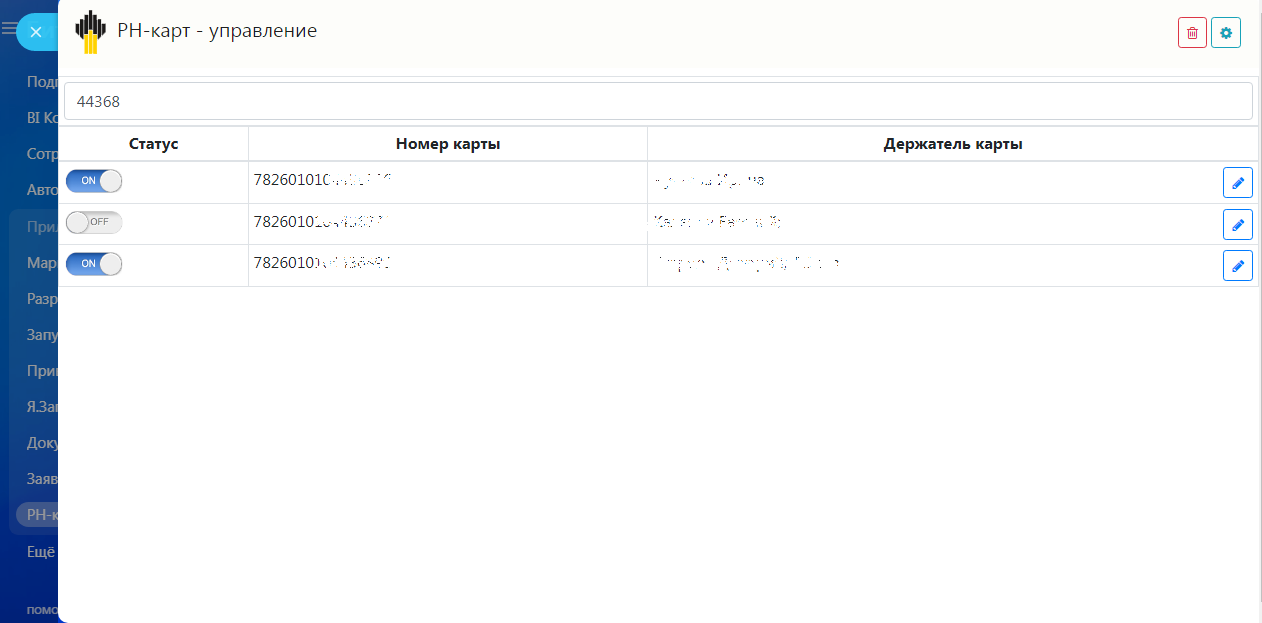 Управление доступом сотрудников к топливным картам РН-карт
