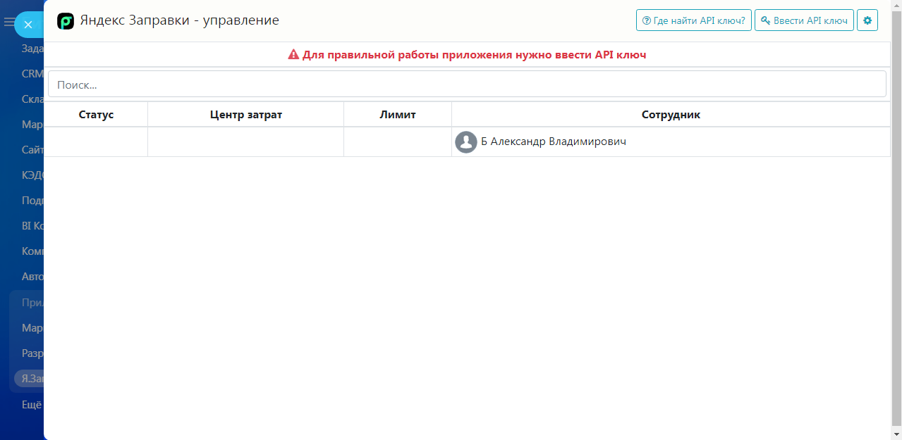 Управление доступом сотрудников к Яндекс Заправкам