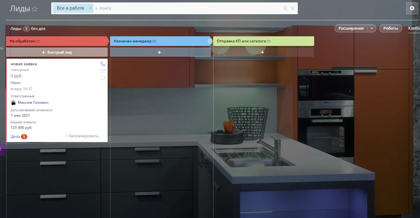 Готовая CRM для производства и продаж кухонь. Систематизация в кратчайшие сроки.