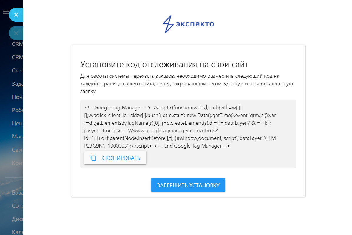 2. Если код установлен, вы сможете активировать на сайте формы обратного звонка и захвата лидов (раздел обратный звонок).
