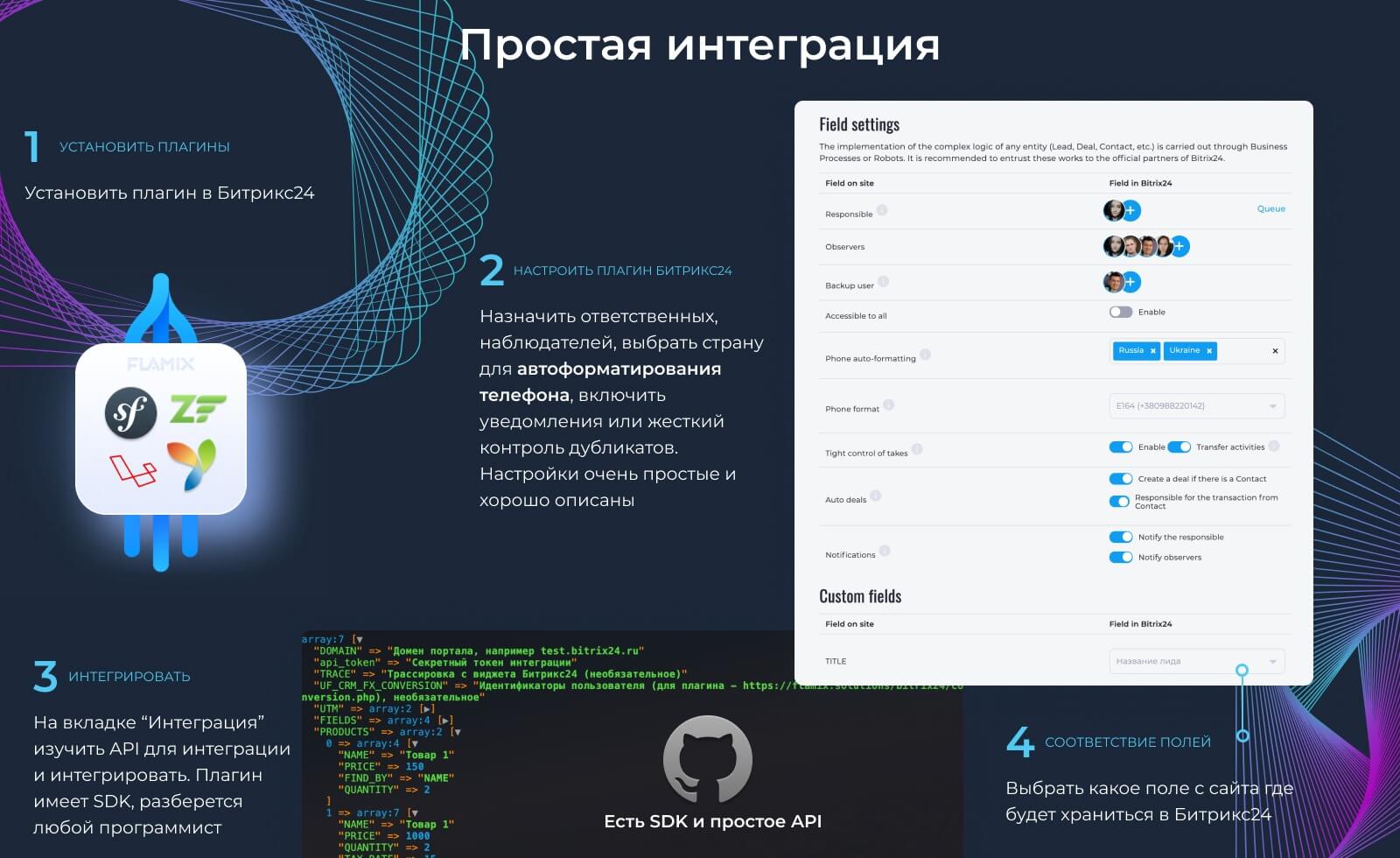 - Готовый SDK - https://github.com/FLAMIXSOFTWARE/b24-lead;