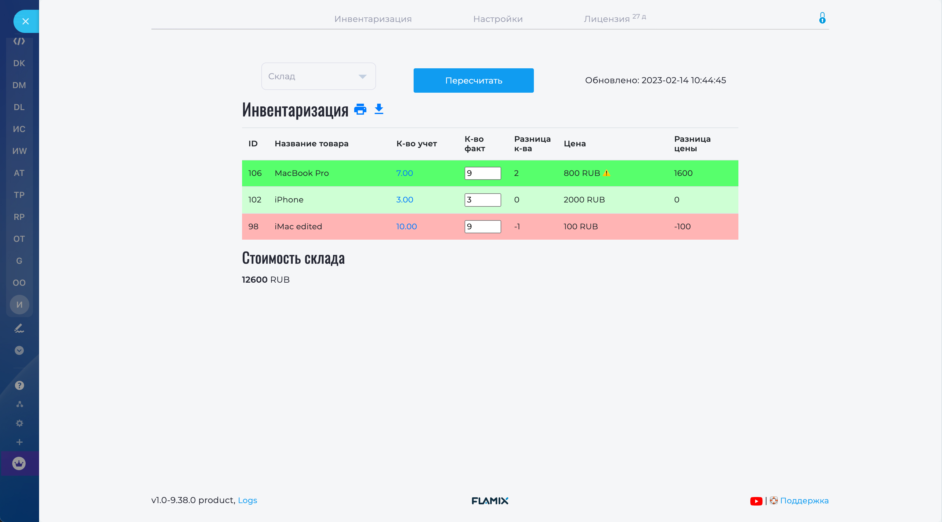 - Проведите инвентаризацию в приложении, распечатайте или скачайте CSV;