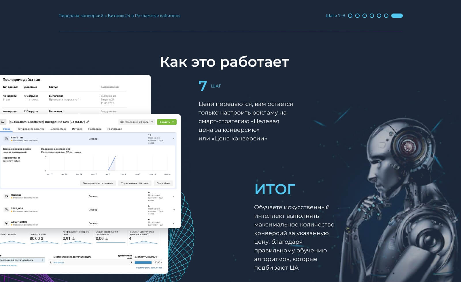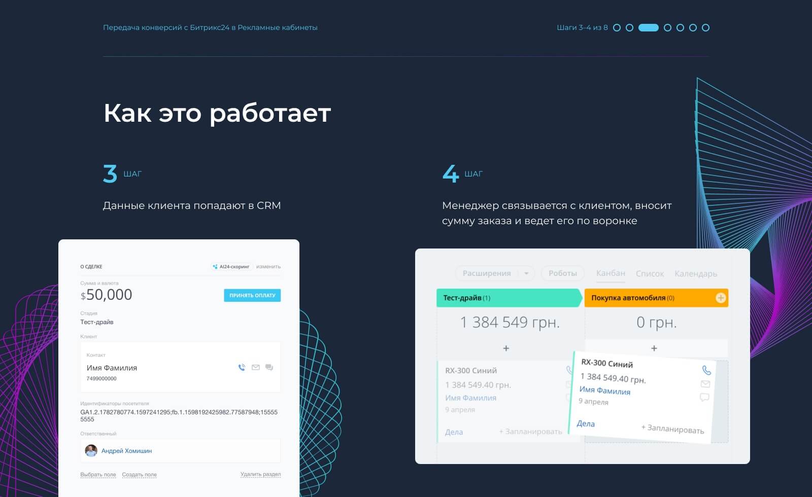 - Продвинутая статистика (например, количество качественных ЛИДов или сумма подтвержденных заказов);