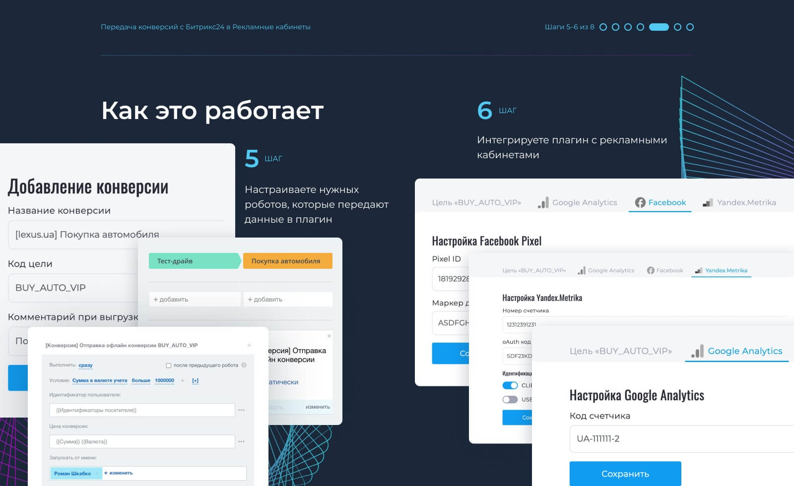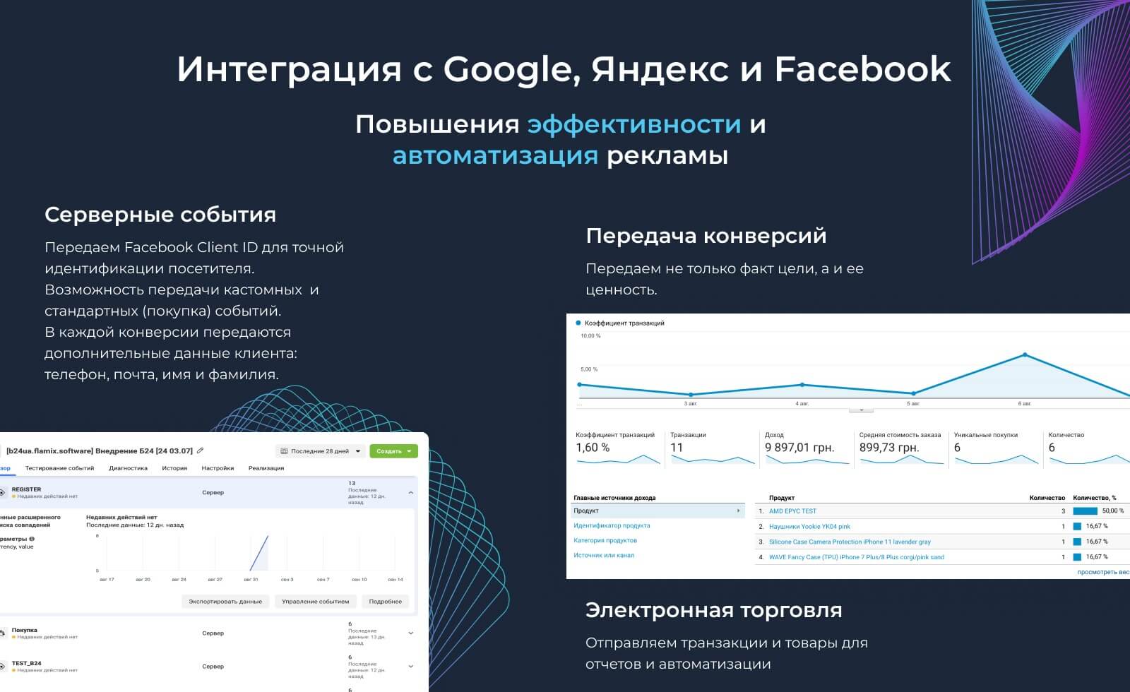 Синхронизация Битрикс24 и систем аналитики (Яндекс.Метрика, Facebook Pixel* и Google Analytics).