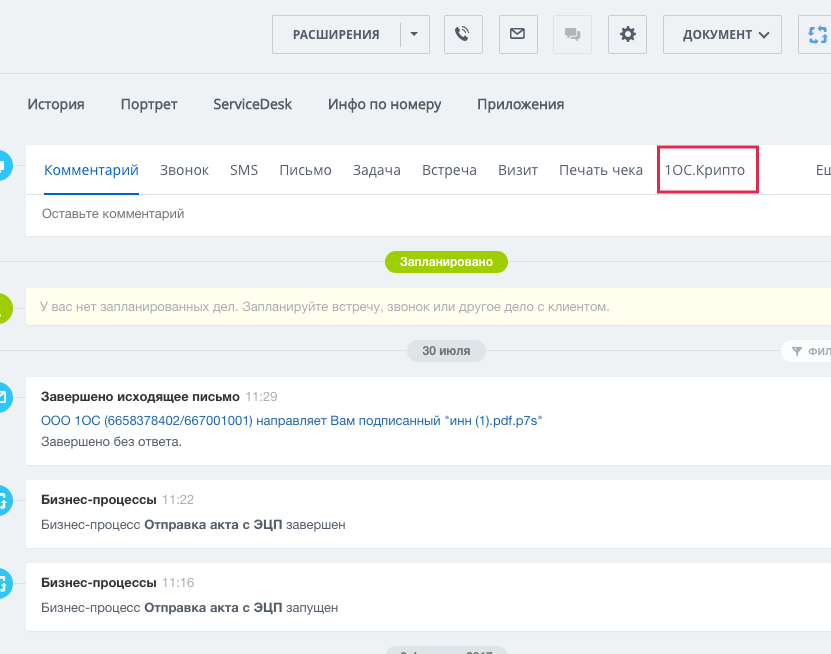 ИНТЕГРАЦИЯ В КАРТОЧКУ КОМПАНИИ