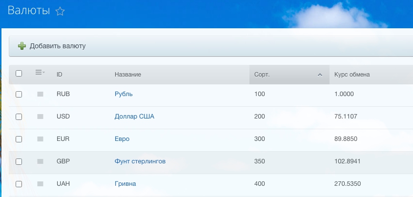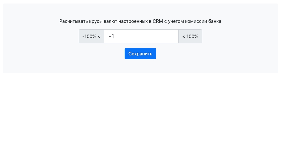 Приложение автоматически обновляет курсы настроенных в CRM валют.