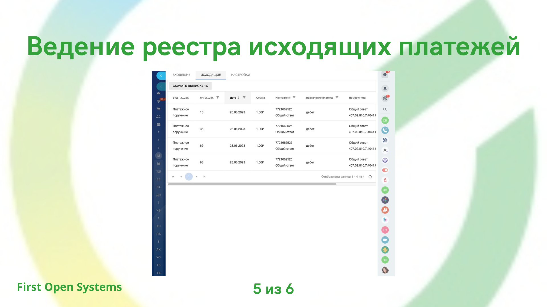 - Ведение реестра исходящих платежей
