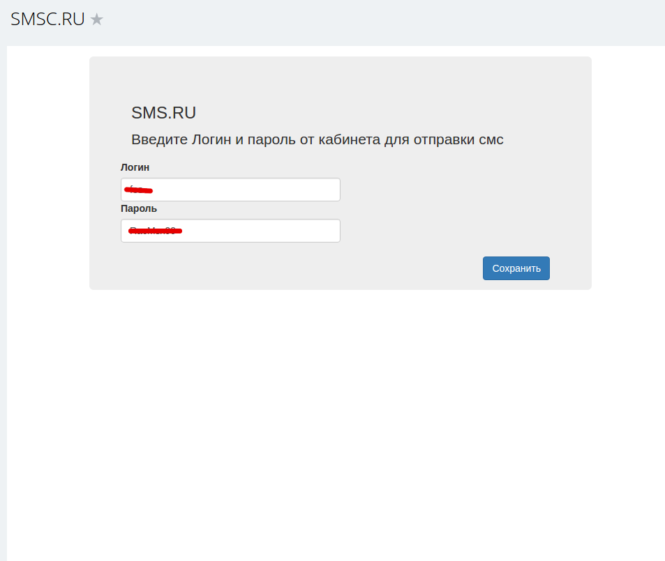 - В настройках введите логин и пароль из кабинета SMSC.RU