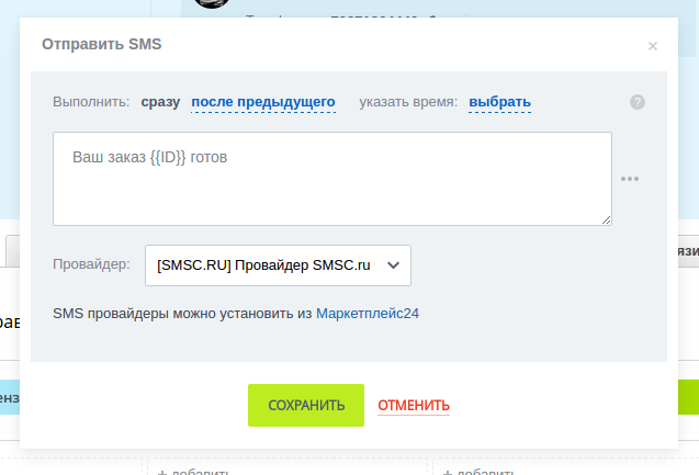 - Настройте отправку СМС в роботах