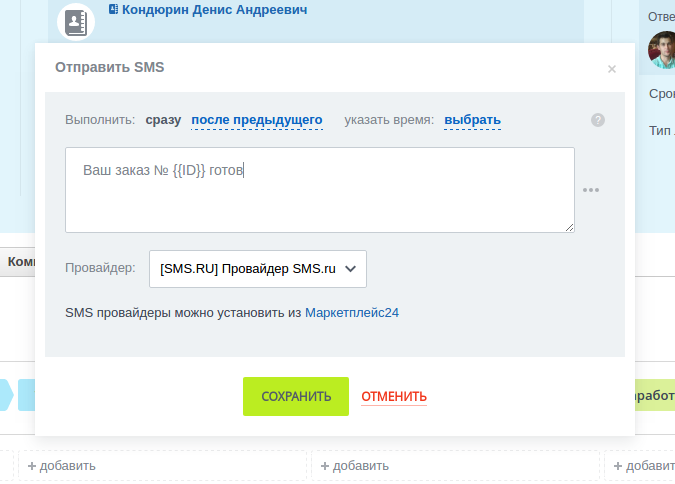 Отправляйте СМС из бизнес-процессов и CRM-роботов.