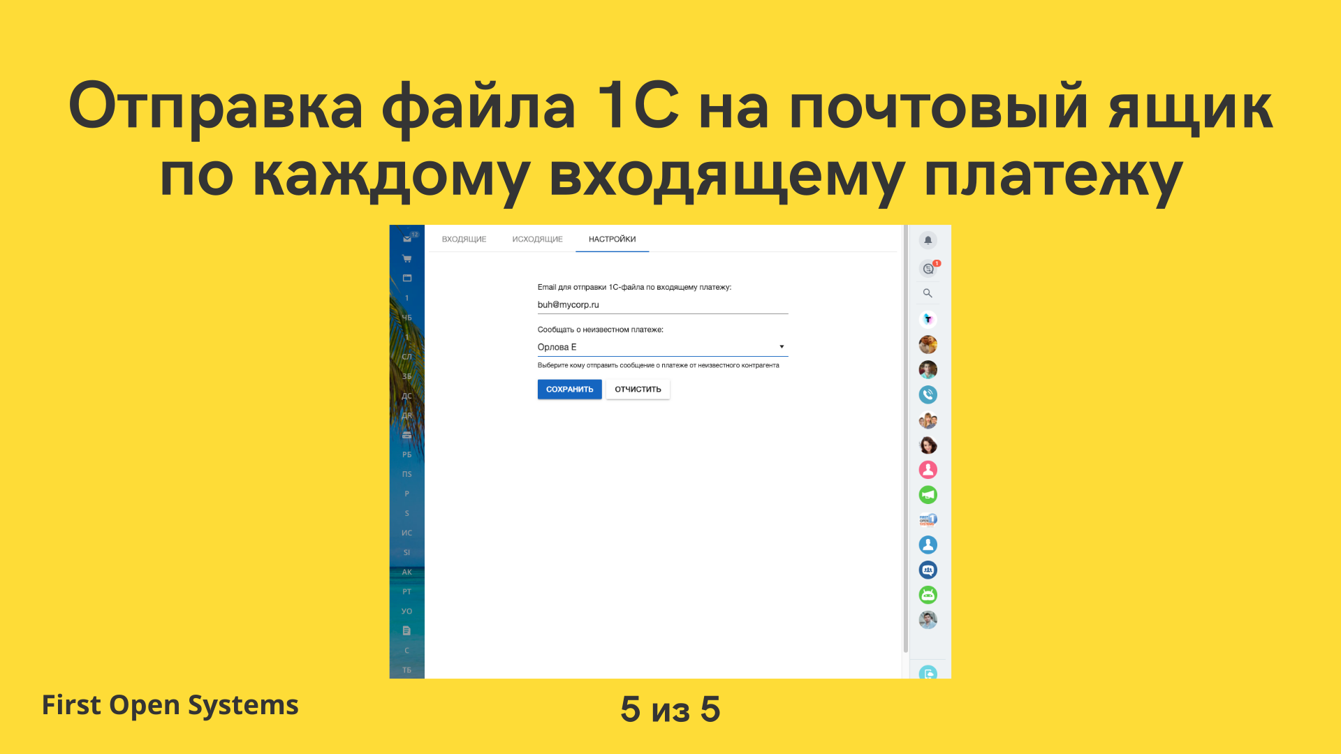 - Отправка файла 1С на почтовый ящик по каждому входящему платежу