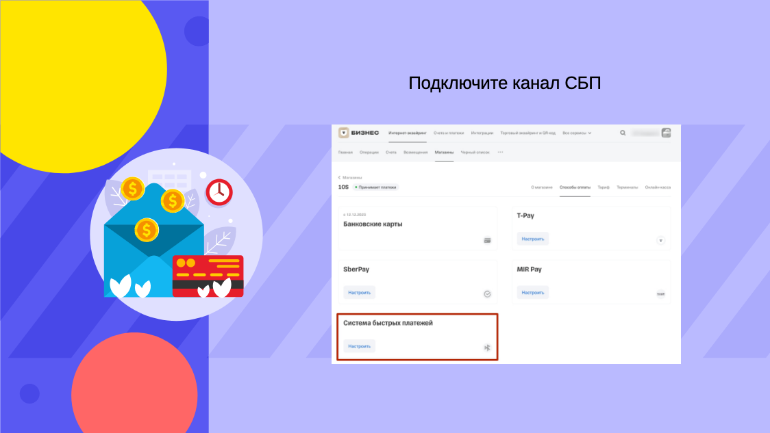 - Подключите канал СБП